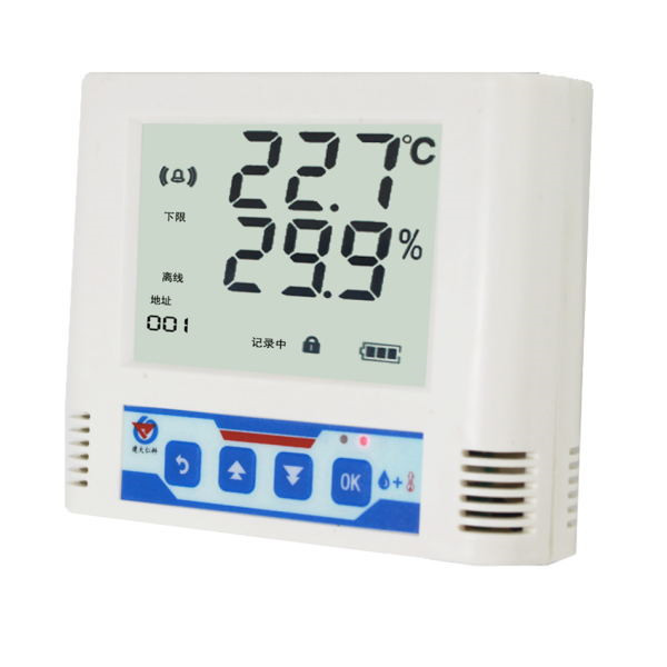 本产品配备高清液晶显示屏,实时显示温湿度数值;监控设备内部实时记录存储,方便随时调取监控数据,也可与我司的监控平台软件进行数据同步;内部集成报警功能模块(蜂鸣器或继电器),可实现高、低温报警和高、低湿报警;RS485信号输出,标准MODBUS-RTU通信协议,通信距离可2000米(实测);支持多台组网式温湿度监控系统安装,组网数量可达254个,是一款智能型工业级温湿度变送记录仪。